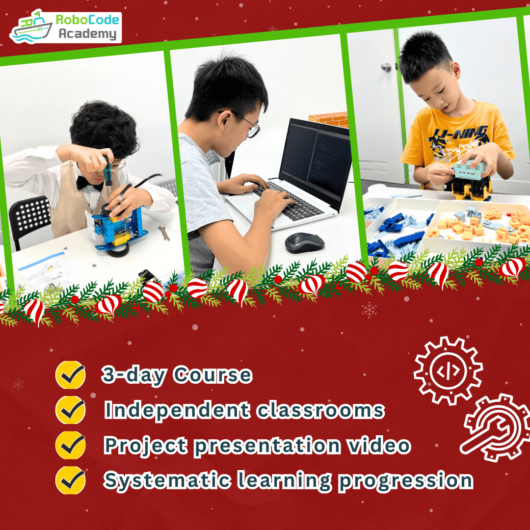 Let your child experience the joy of creation this Christmas holiday! RoboCode has specially designed a series of Christmas Coding Courses for children aged 4 to 16, covering popular technology topics such as fundamental programming, robotics design, game development, AI, and machine learning. Through hands-on learning, students will explore how technology works and create their very own projects.