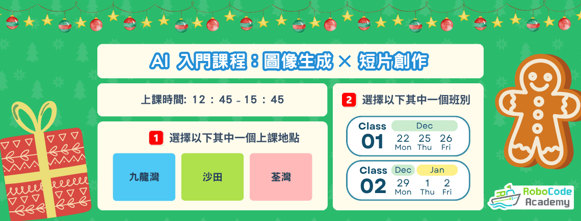 本課程為 AI 新手設計,教授學生利用不同的 AI 工具,構思故事架構、生成故事內容,然後加入背景音樂、對白等。讓學生可以發揮創意的同時,亦能認識 AI,體驗科技與想像力結合的樂趣。
