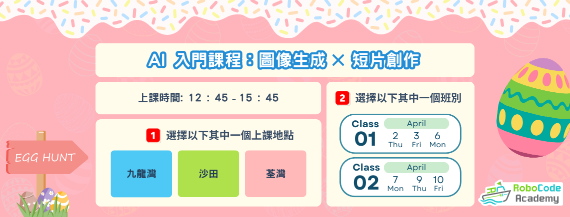 我們的復活節特別課程 名額有限,立即以下方的報名方法,讓小朋友沉浸在編程和人工智能的科技世界!