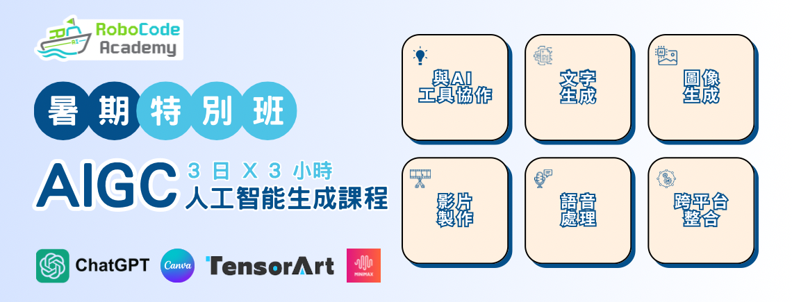 本課程為 AI 新手設計,教授學生利用不同的 AI 工具,構思故事架構、生成故事內容,然後加入背景音樂、對白等。讓學生可以發揮創意的同時,亦能認識 AI,體驗科技與想像力結合的樂趣。